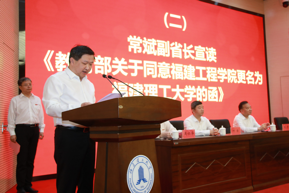 2023年8月30日,理工科大学高质量发展研讨会暨福建理工大学揭牌仪式在旗山校区举行。省委常委、宣传部部长张彦出席并代表省委省政府对学校办学发展提出希望,副省长常斌出席并宣读《教育部关于同意福建工程学院更名为福建理工大学的函》。