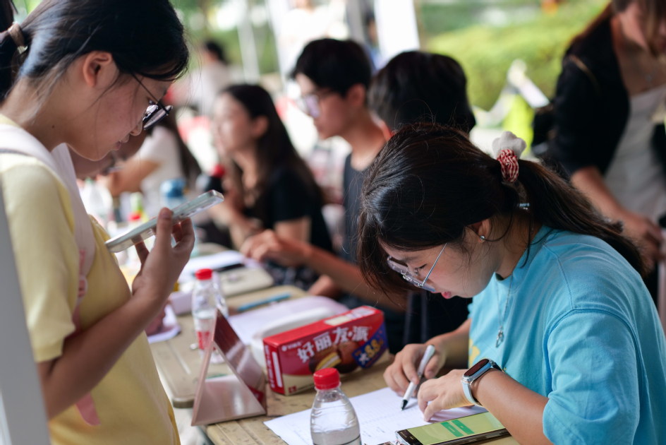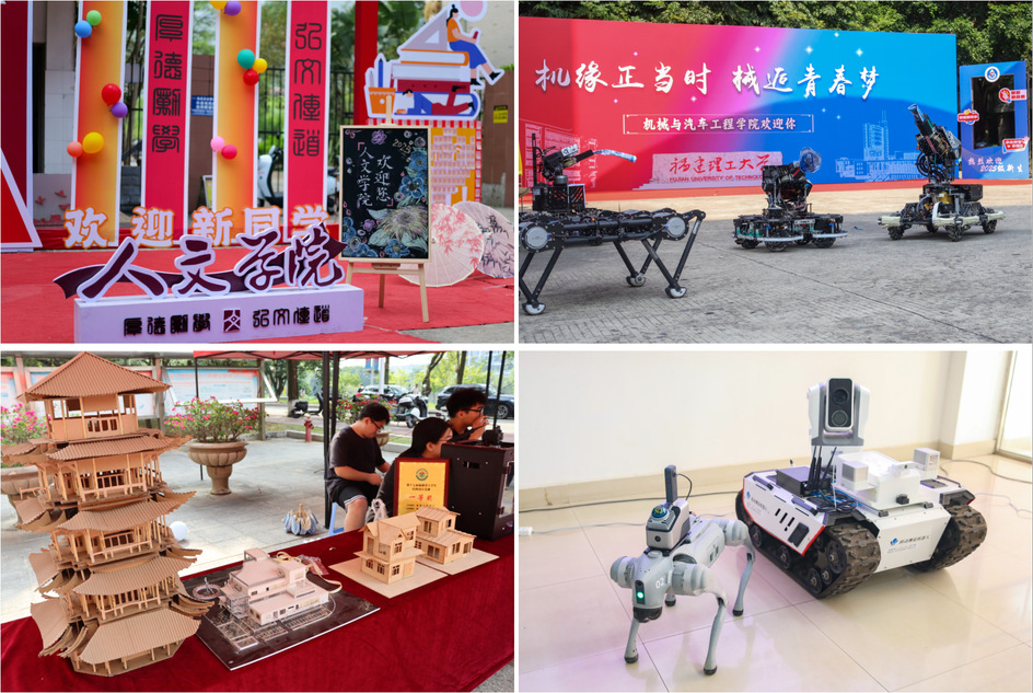 各二级学院迎新点创意纷呈、特色鲜明。机械与汽车工程学院机器狗、方程式赛车等“机械天团”展现硬核科技实力;建筑与城乡规划学院将AI互动元素融入迎新,打造学院专属IP形象“筑小可”;管理学院设置劳模工匠精神、体育精神、学科竞赛等文化展示区,将文化育人充分融入迎新工作各环节;设计学院定制系列文创产品,以设计点缀生活,让文化焕发新生;互联网经贸学院以“苍霞新程”为主题展示青芒文化,持续深化“苍霞迎新季”志愿服务品牌建设;智慧海洋科学技术学院结合学科特色,融入海工装备展、“智海航图”学涯引航,将专业元素、思政引领融入迎新布置;海外教育学院·帕特雷国际工程师学院现场打造“时光隧道”,通过气球放飞祝福语等仪式,增强沉浸体验与集体记忆。