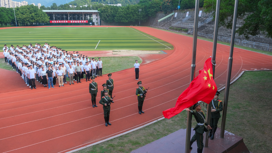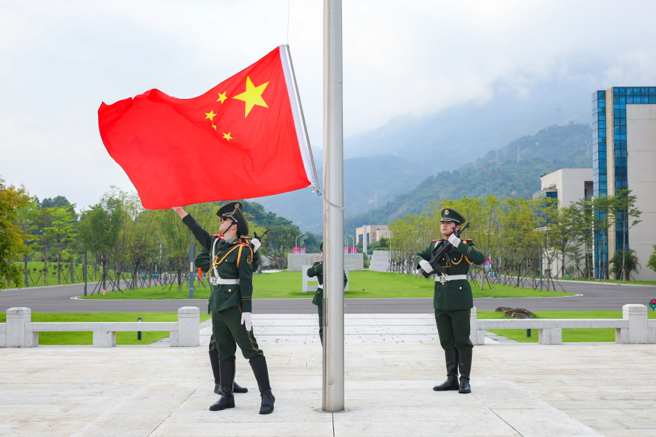 2025年10月1日上午,学校在旗山校区和鼓山校区同步举行庆祝中华人民共和国成立76周年升国旗仪式。鲜艳的五星红旗伴随着雄浑嘹亮的国歌声冉冉升起。学生代表们深情朗诵《复兴路上的青春力量》、高唱《歌唱祖国》,抒发了新时代青年的爱国情感,展现福工学子矢志报国、挺膺担当的精神风貌。