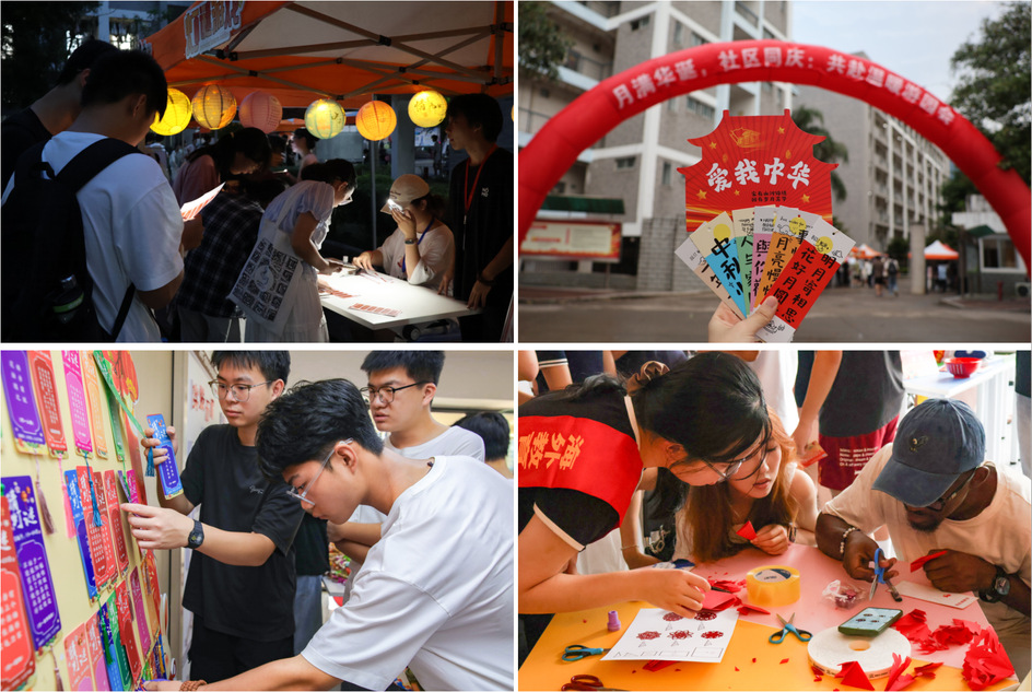 各单位也纷纷组织开展了丰富多彩的庆祝活动,让师生们在欢乐祥和的浓郁氛围中欢度节日,在潜移默化中厚植家国情怀。在“一站式”学生社区服务中心,留校师生共同参与“月满华诞,情暖社区”主题游园会,在猜灯谜、诗词飞花、巧手包饺、飞盘九宫格、翰墨书法、棋弈对垒、博饼等游戏中沉浸式感受传统节日氛围,在温馨团聚中体会“社区如家”的温暖,现场欢声笑语、情意融融。在旗山校区餐厅,人文学院组织的主题快闪活动吸引众多学生参与,多民族学子在现场共同唱响《我和我的祖国》,用歌声表达中华儿女对伟大祖国的深情礼赞。在海外教育学院·帕特雷国际工程师学院,中外学生在猜灯谜、做月饼、投壶、剪纸等活动中加深理解、增进友谊,感受中华传统文化魅力。