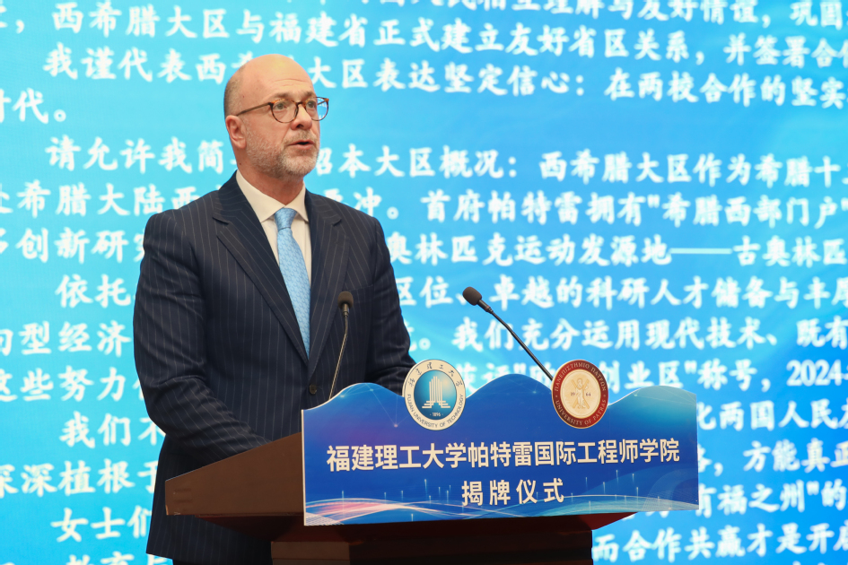 韦建刚指出,中希两国友谊源远流长,福建省与西希腊大区是友好省区,帕特雷国际工程师学院是两校携手推动两省区友好交流的重要成果。希望能够进一步发挥双方在工程教育领域的办学优势,推动资源深度融合、创新人才培养,将帕特雷国际工程师学院打造成中希教育合作的典范,为服务高质量共建“一带一路”贡献教育力量。