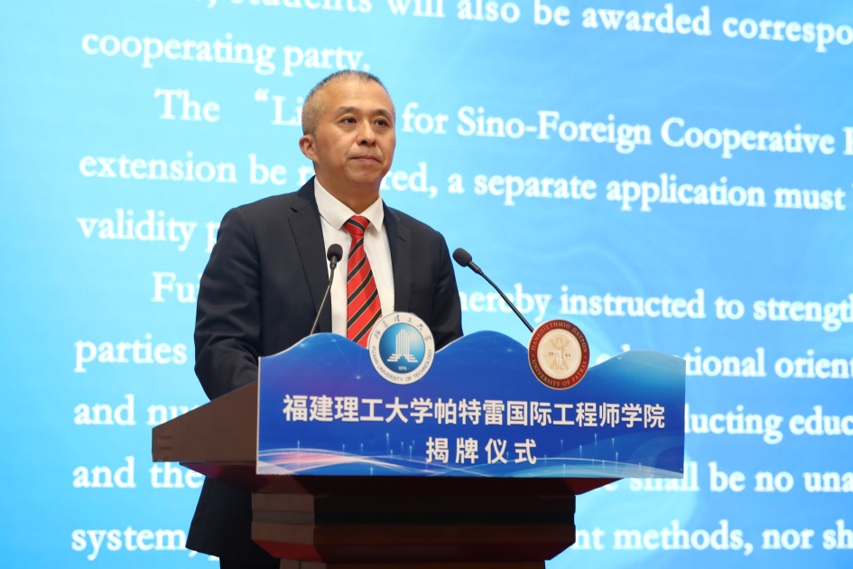 仪式上,林正泳宣读了《教育部关于同意设立福建理工大学帕特雷国际工程师学院的函》,双方代表共同为“福建理工大学帕特雷国际工程师学院”揭牌。